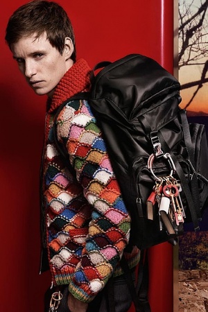 На презентаційній фотосесії, Едді Редмейн був одягнений в стильне пальто, кардигани і з рюкзаком на плечах.