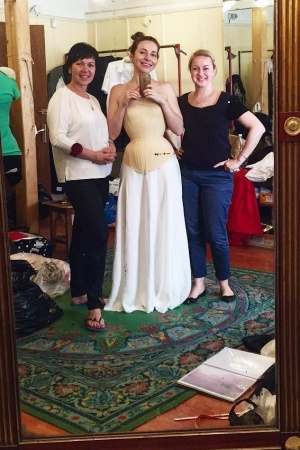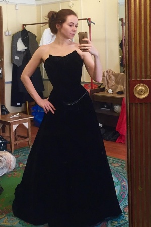 На фото актриса позує перед дзеркалом в ательє, приміряючи вбрання для нової ролі. Гусєва зіграє в мюзиклі "Анна Кареніна".