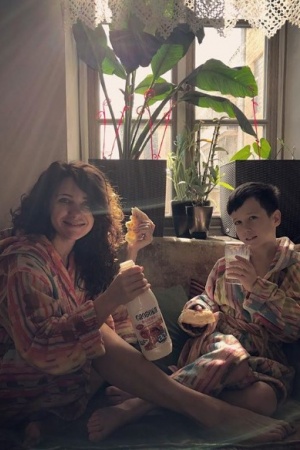 Вони позують в однакових халатах. Мати і син снідають молоком і перепічкою. Передплатникам зворушливий знімок припав до душі. Фолловери пишуть, що Корнєй дуже схожий на маму.