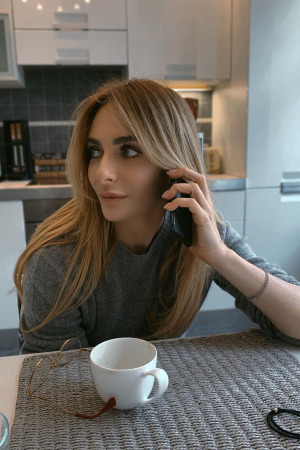 На фото Катя позує в сірому светрі. Доповнили "домашній" і затишний образ легкі локони і ніжний макіяж.