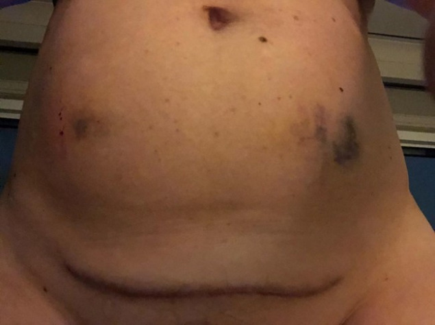 На своїй сторінці в Instagram зірка кіно опублікувала моторошний кадр після ЕКЗ. Живіт артистки в жахливому стані – весь в синцях і шрамах. Як зізналася сама Емі, вона вже тиждень як перебуває в процесі екстракорпорального запліднення.