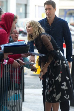 Всього три місяці тому Емілі Блант стала мамою вдруге: актриса народила дочку Вайолетт. Через такий короткий проміжок часу, проведені вдома, Емілі поспішила повернутися в стрій і тепер їздить по світу в рамках промо-туру фільму "Дівчина в поїзді".