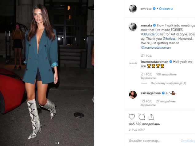 Знаменита у всьому світі модель і актриса Емілі Ратаковськи поділилася з прихильниками фото Instagram, на якому вона засвітила свої груди.