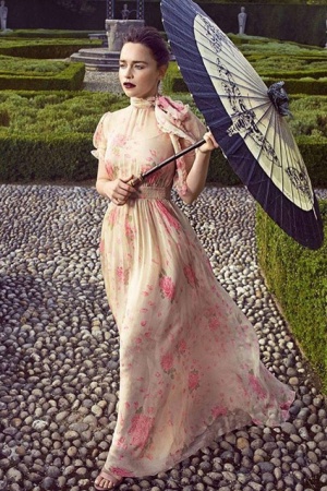 На обкладинці першого зимового номера американського Harper's Bazaar з'явилася 31-річна Емілія Кларк в оточенні ніжних квітів. Для фотосесії зірка серіалу "Гра престолів" (Game of Thrones) приміряла сукні Giambattista Valli і Dolce & Gabbana, в яких її зобразив фотограф Маріано Віванко.