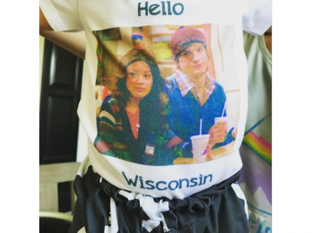 Актор розмістив на своїй сторінці в Instagram забавний знімок малюка. На фото зображений дев'ятимісячний Дмитро в футболці з зображенням зіркових батьків. На принте красуються юні Ештон і Міла зі зйомок "That '70s Show".