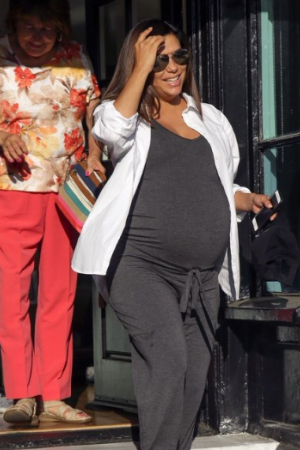 Знаменитість, чиї форми досить сильно округлялися, красувалася в зручному трикотажному комбінезоні.