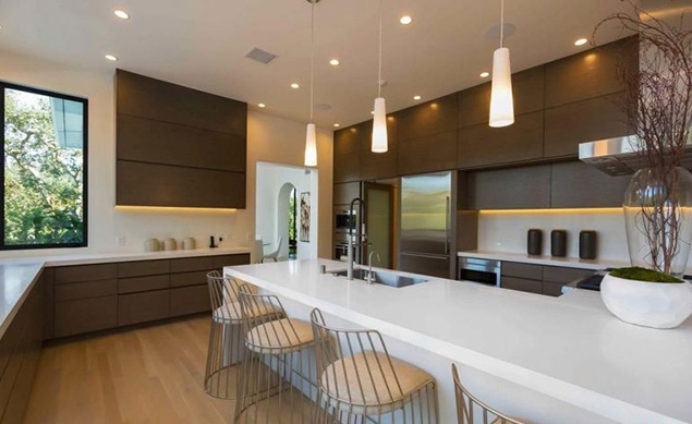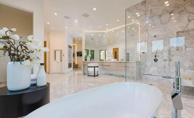 Крім перерахованих приміщень, інтер'єр яких виконаний в нейтральній кольоровій гамі, в будинку є СПА, робочий кабінет, винний льох і тенісний корт.