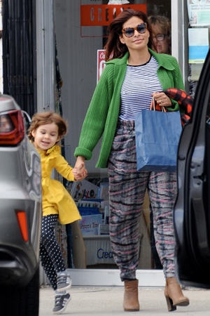 В понеділок папрарацці піймали 45-річну Єву Мендес під час прогулянки з чотирирічною дочкою Есмеральдою. Актриса посміхалася і тримала доньку за руку.