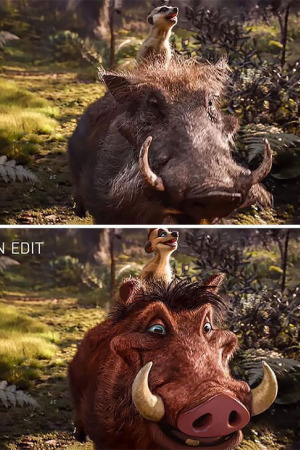 Попри те, що ігровий ремейк "Короля лева" показав чудові касові збори в перші вихідні, рейтинги фільму залишають бажати кращого. Все тому, що багато глядачів визнали реалістичних персонажів позбавленими емоцій і не надто привабливими. Цей недолік спробував виправити один з прихильників мультфільму.