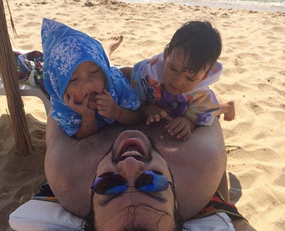 Співак опублікував на своїй сторінці в мікроблозі зворушливі "пляжні" знімки з сином Мартіном і дочкою Аллою-Вікторією.
