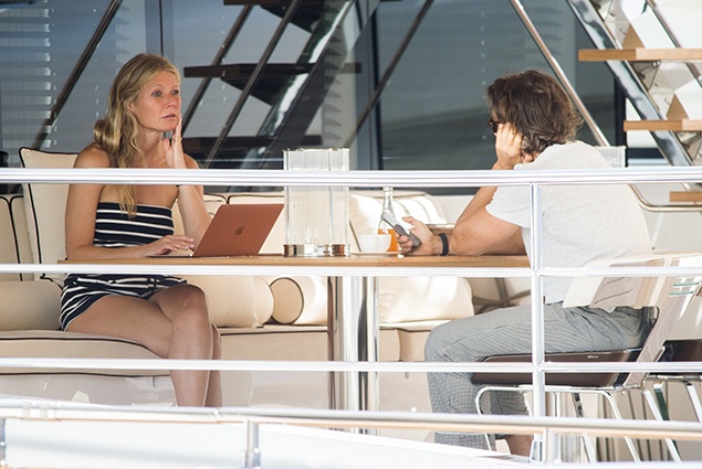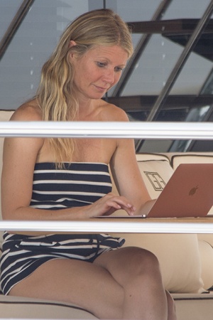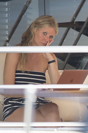 Для відпочинку на розкішній яхті Гвинет вибрала найдемократичніший образ: зірка фільму "Залізна людина" одягнулася в короткий чорно-білий смугастий комбінезон з відкритими плечима. Від макіяжу під жарким італійським сонцем актриса відмовилася, продемонструвавши свою природну красу. Гвинет вже встигла і позагорать - на деяких знімках виразно видно сліди від купальника.