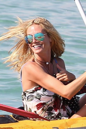 Папараці зняла Хайді і Віто на палубі. Клум по-дитячому сиділа на колінах у свого бойфренда.