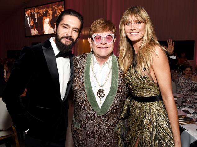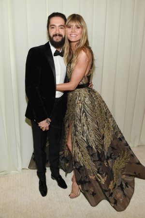 На заході побувала безліч зірок шоу-бизнеса, серед яких були також і Хайди Клум з Томом Каулитцем. Для урочистості пара одягнулася у вишукані вечірні вбрання. На Хайди була запаморочлива красива приталена сукня в підлогу з чорного шифону А-силуэта, прикрашене прекрасною золотистою вишивкою у вигляді рослинних мотивів з множиною пайеток і страз. Свій розкішний лук манекенниця доповнила золотистими босоніжками на високому каблуці, нюдовым мейком і елегантним укладанням на розбещеному волоссі з прямим чубком.