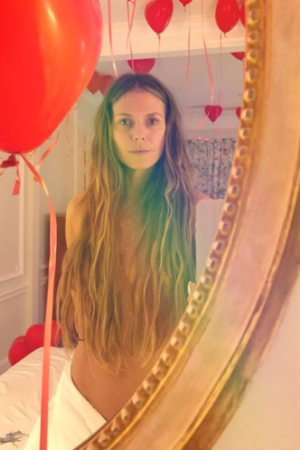 Так, днями у своєму Instagram- аккаунті знаменитість опублікувала селфи, на якому зафіксована голою. Правда, груди Хайди прикриває її довге волосся, а на стегно модель накинула білий рушник.