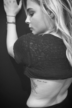 На лівому боці Хлоя зробила напис з ім'ям своєї бабусі – Жанетт Дьюк. На цьому ж місці у актриси є й інша татуювання – зображення квітучої троянди.