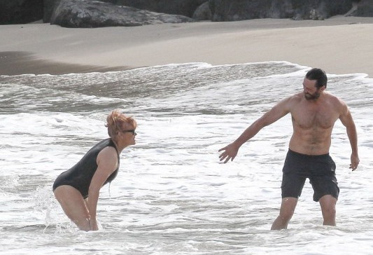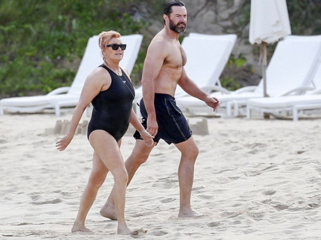 У святковий день пара прилетіла на острів Сент-Бартелемі, щоб усамітнитися на пляжі. Пара трималася за руки і багато обіймалася, але й тут їм не вдалося уникнути уваги папараці. Деборра виглядала щасливою і багато сміялася, коли вони з Х'ю виходили з води.