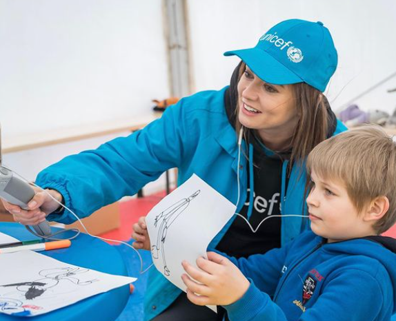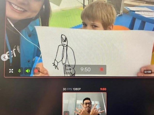 Актор опублікував на своїй сторінці в Instagram відео, в якому він спілкується з волонтеркою ЮНІСЕФ, а потім — з маленьким українцем Костею, який був змушений залишити свій рідний будинок через вторгнення Росії.