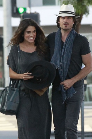 Репортерам вдалося сфотографувати Ніккі Рід і Ієна Сомерхолдера на одній з вулиць в Беверлі-Хіллз (Каліфорнія). Зоряна пара вирішила відвідати ресторан Cafe Gratitude, де вони зустрілися зі своєю приятелькою, актрисою Терезою Палмер. Репортерам вдалося зробити кілька знімків знаменитостей. На фото видно животик актриси, незважаючи на те, що для виходу в світ Ніккі вибрала довге темне плаття вільного покрою.