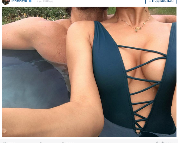На сторінці в Instagram у Шейк з'явився досить еротичний знімок, зроблений в басейні. На фото Ірина позує в спокусливому купальнику, який вдало підкреслює її розкішні груди, і в обіймах чоловіка.