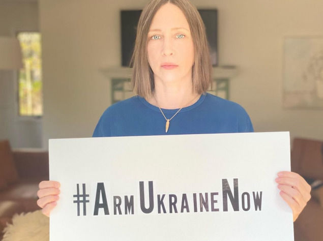 Зірка "Відступників" Віра Фарміга, кількість підписників якої нараховує 1,1 млн. людей, позувала з великим плакатом, де попросила допомоги для України, зокрема важку зброю.