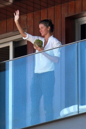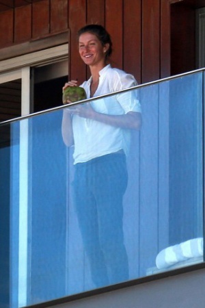 36-річна Жизель Бундхен виглядала щасливою і розслабленою, коли проводила час зі своїми дітьми на балконі готелю у Ріо-де-Жанейро. Тисячі пройдених подіумів і червоних доріжок зробили свою справу, і тепер, по всій видимості, Жизель не хвилюється перед відповідальною роллю у відкритті Олімпійських ігор.