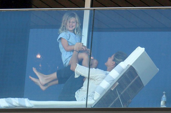 Бундхен грала з шестирічним сином Бенджаміном та трирічною донькою Вівіан, говорила по телефону, грала на гітарі і зовсім не звертала уваги на фотографів. Чоловік Жизель Том Бреді поки не приєднався до своєї сім'ї в Ріо.