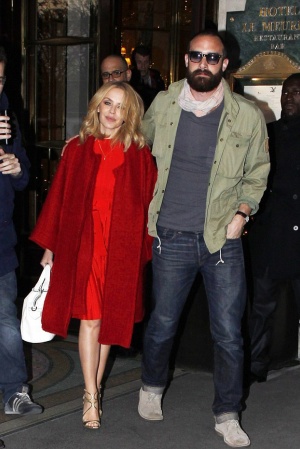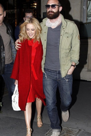 Пара відвідала Францію з нагоди виходу нового альбому Міноуг "Kylie Christmas". Артистка була одягнена в червоний жакет і коротке плаття такого ж відтінку, а Зассе волів вільний стиль - вибравши джинси і куртку.