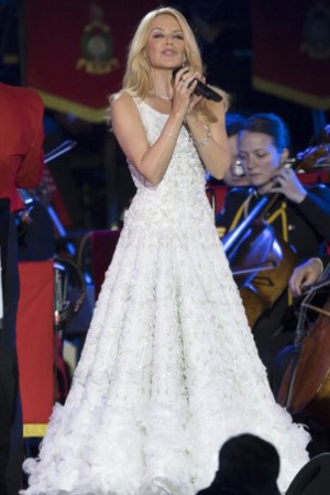 Кайлі Міноуг з'явилася на святкуванні ювілею Єлизавети II в сукні, схожому на весільну. Співачка була в компанії бойфренда Джошуа Сасса, про заручини з яким було оголошено в лютому.