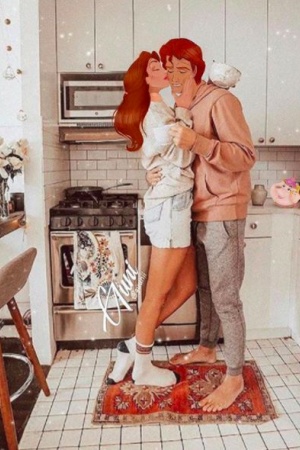 Казково прекрасний проект під назвою "Вони тут, поруч". від талановитої азербайджанської художниці. Дівчина-художниця Гюнель Гусейнова покаже мультяшні парочки такими, якими ми їх ще ніколи не бачили: ніяких палаців і шикарних суконь - тільки реальне сучасне життя. Спільні покупки в супермаркеті, романтичні вечори вдома, вечеря в ресторані - все це вони б робили, якщо були б реальні.