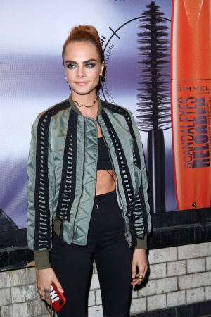 Для виходу в світ Кара зупинила свій вибір на вбранні street style, вибравши чорні джинси з високою талією і розрізами на колінах, короткий чорний топ, поверх якого вона одягла стильну куртку. Черевики на високих підборах, безліч прикрас і ідеальний пучок – в цей вечір в образі Кара Делевінь не було нічого зайвого.