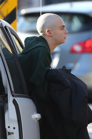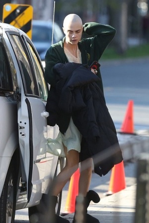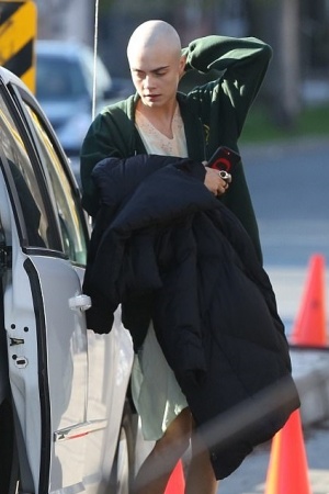 Кару Делевінь сфотографували на знімальному майданчику нового фільму. Модель зважилася на радикальні зміни, щоб зіграти в драмі "Життя за рік" (Life In A Year).