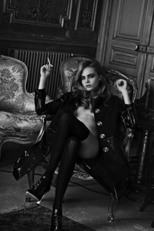 Кара Делевінь знялася для камер фотографів Пітера Ліндберга і Фабьєна Барона. У їх об'єктивах Кара позує зовсім без білизни. На чорно-білих кадрах Делевінь з'явилася у верхньому одязі, під яким немає нічого, окрім панчох.