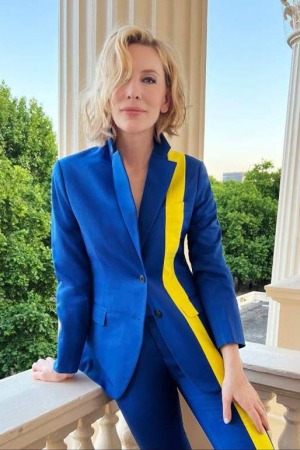 Світові зірки продовжують підтримувати Україну. Австралійська кіноакторка Кейт Бланшетт вбралася у синьо-жовтий костюм, який згодом продадуть на аукціоні.