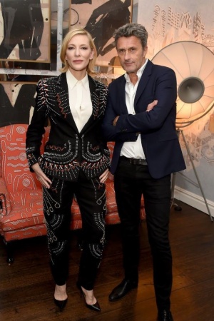 На обличчі у Бланшетт був легкий макіяж в натуральних відтінках, а волосся було акуратно укладене. Актриса була зафіксована поряд з режисером.
