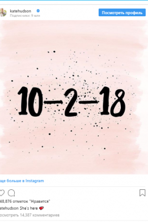 У минулий вівторок, 2 жовтня, Кейт Хадсон і її бойфренд Денні Фудзікава стали батьками: у своєму Instagram 39-річна актриса оголосила, що у неї народилася дочка, яку вирішено було назвати Ронні Роуз.