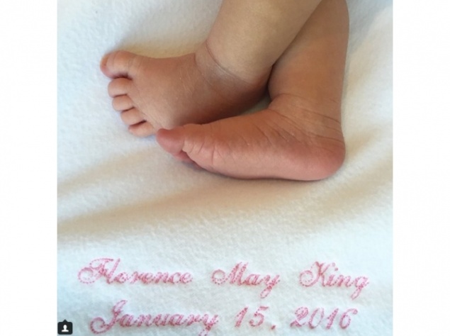 На своїй сторінці у соцмережі Кендіс опублікувала фотографію ніжку малюка. На знімку видно, що дівчинці дали ім'я Флоренс Мей Кінг.