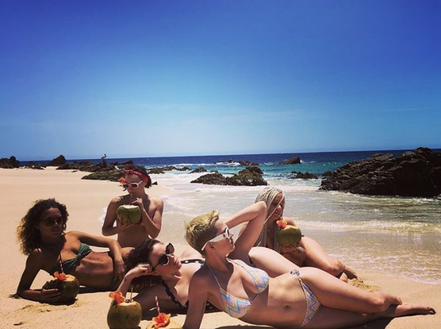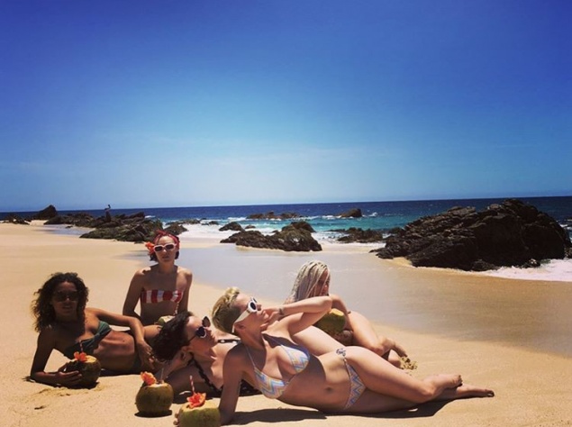 Днями Перрі опублікувала фото з відпочинку біля океану. Кетті разом з подругами приймає сонячні ванни і ласує коктейлями.