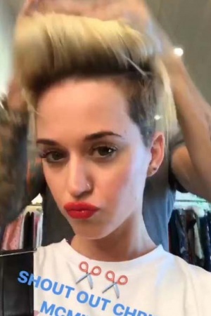 Кеті поділилася фотографією зі своїм новим іміджем за допомогою відео в Instagram, написавши, що не була готова до такого до цього моменту. Мабуть, момент дійсно настав. Співачку вже щосили порівнюють з Майлі Сайрус, яка ще кілька років тому наважилася на таку зміну іміджу. А вам подобається нова зачіска Кеті Перрі?