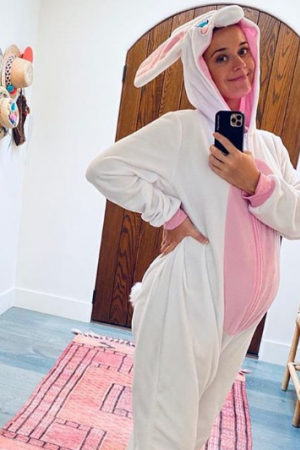 Співачка Кеті Перрі знялася в піжамі у вигляді кролика і показала кругленький живіт. Знімком зірка поділилася на своїй сторінці в Instagram.