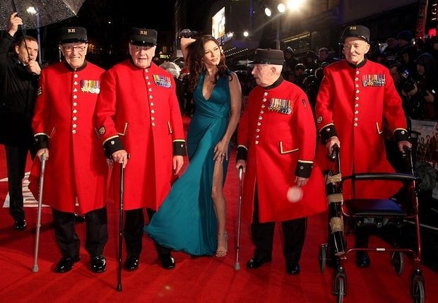 Не встояли перед красою актриси навіть старенькі ветерани, з якими зірка вийшла на червону доріжку. Можна було бачити, як старички намагаються розглянути пишний бюст Кетрін, і на їх обличчях помітне збентеження.
