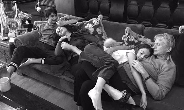 На одному зі знімків відображені всі члени сім'ї: 72-річний Майкл Дуглас і діти зіркової пари – дочка Керіс і син Ділан. Разом з ними актриса розташувалася на дивані у вітальні.