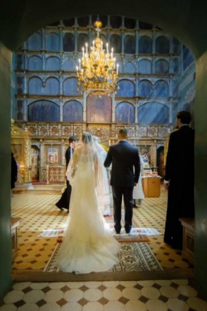 Фотографіями з церемонії поділилася дружина актора. На фото, зробленому в одному з храмів, Надія і Олексій – біля вівтаря.