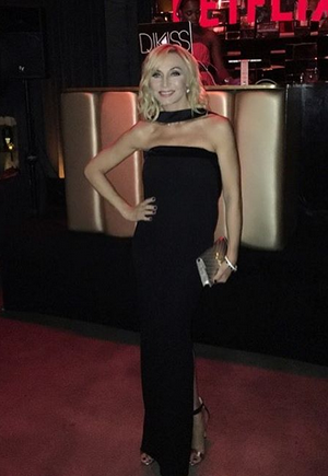 Для вечірки в Лос-Анжелесі артистка вийшла у відвертій чорній сукні з відкритими плечима.