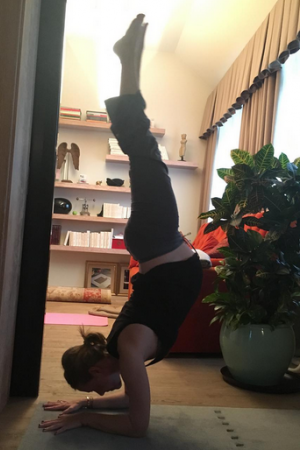 Російська телеведуча Ксенія Собчак в листопаді повинна народити. Не дивлячись на це, журналістка активно займається йогою і виконує навіть самі складні асани. У свій Instagram вона виклала фото, на якому вона стоїть на руках вниз головою.