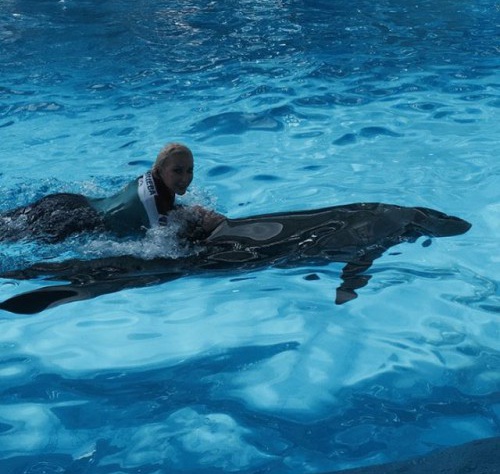 "Сьогодні вперше в житті я купувалася з дельфінами!!!!))) доторкнулася до прекрасного !!!! Я навіть не знаю, як пояснити це почуття))) Це самі розумні, самі ніжні і красиві тварини)))) Ця любов назавжди! Ось прям мимимими.))))))".
