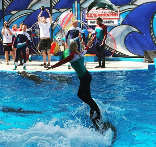 Російська телеведуча вперше в житті покупалася з дельфінами. Своїми емоціями і фотографіями знаменитість поділилася з шанувальниками на сторінці в Instagram.