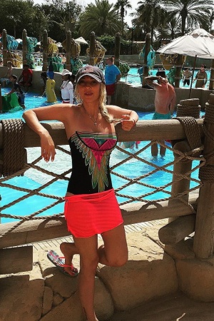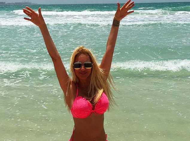 На одному зі знімків з відпочинку телеведуча позує на біля моря у Дубаї в рожевому бікіні з push up, вихваляючись плоским животом.