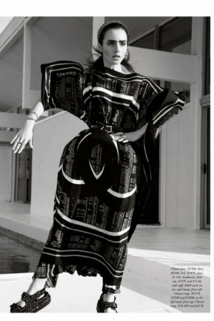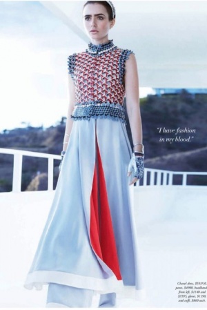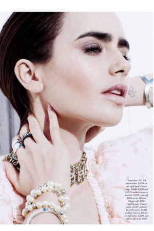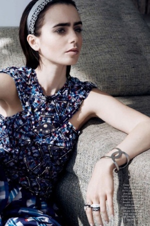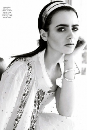 В інтерв'ю, яке супроводжує фотосесію, Коллінз розповіла про роботу з Карлом Лагерфельдом (актриса є обличчям бренду Barrie, який належить Chanel і рекламу для якого, зрозуміло, знімає сам легендарний модельєр): "Він завжди знає, чого хоче, і не метушиться. Я знімалася у нього в трьох кампаніях для Barrie у його студії в Парижі, і це був дивовижний досвід. У нас – чудовий зв'язок і "хімія"".
