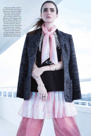 Британська актриса Лілі Коллінз, знайома глядачам за фільмами "З любов'ю, Рози" і "Темна сторона", знялася в стильній фотосесії для березневого номера австралійського Harper's Bazaar.