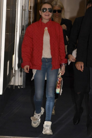 У аеропорту 33-річна актриса не стала звертати до себе зайвої уваги і "замаскувалася" під дівчину-підлітка: одягнулася в джинси скінні, які дуже йдуть їй, червону куртку бомбер і великі білі кросівки.